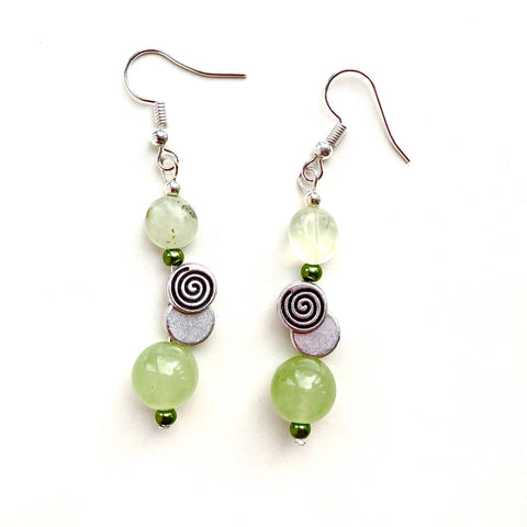 This striking new design features dark green Jasper and translucent Prehnite gemstones teamed with interesting Celtic spirals and silver plated Hematite tubes.